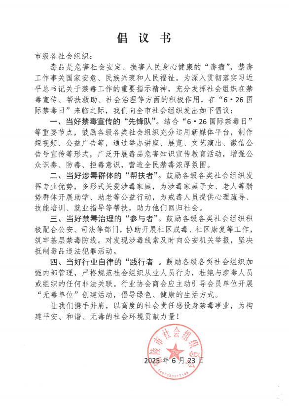 禁毒倡議書(shū)